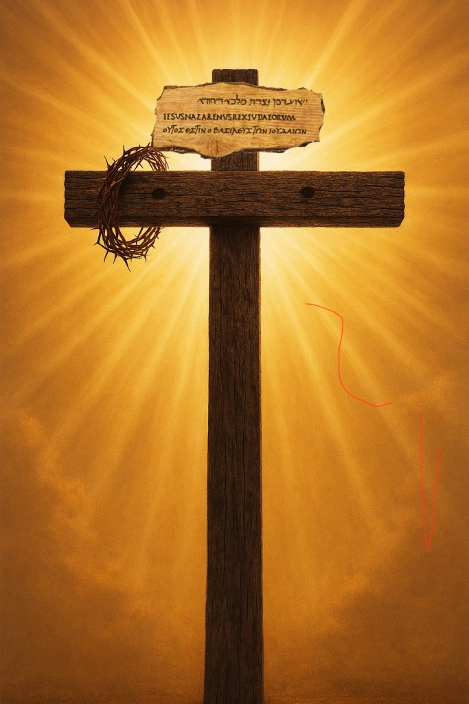 The mockery of the Romans who crammed a crown of thorns on His head and affixed a sign – written by Pilate himself in three languages (Greek, Hebrew and Aramaic) so all could read and understand the sarcastic wording: “JESUS, KING OF THE JEWS”.