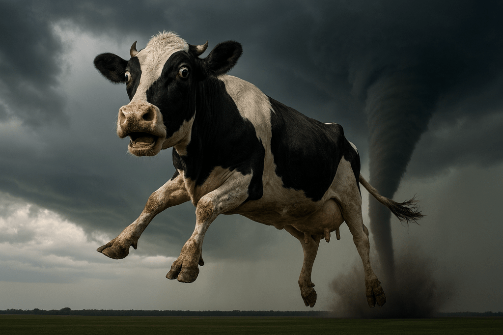 This is point where my analogy falls apart a bit. You see, Jesus had the ability to stop the wind and the rain and the waves immediately. My dad… well, had a tornado dropped from that storm, we may well have ended up swirling around the edge of the vortex like the cow in The Wizard of Oz.
