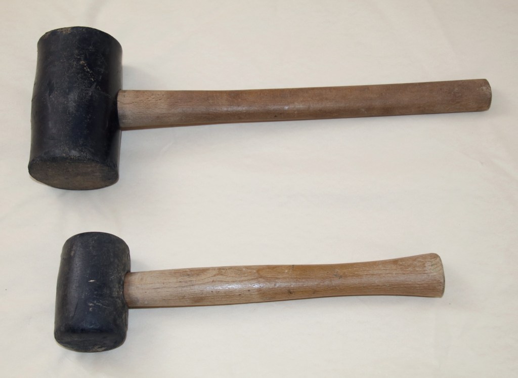 a: one with a large head used for driving a tool (as a chisel) or for striking a surface without damaging it. https://www.merriam-webster.com/dictionary/mallet